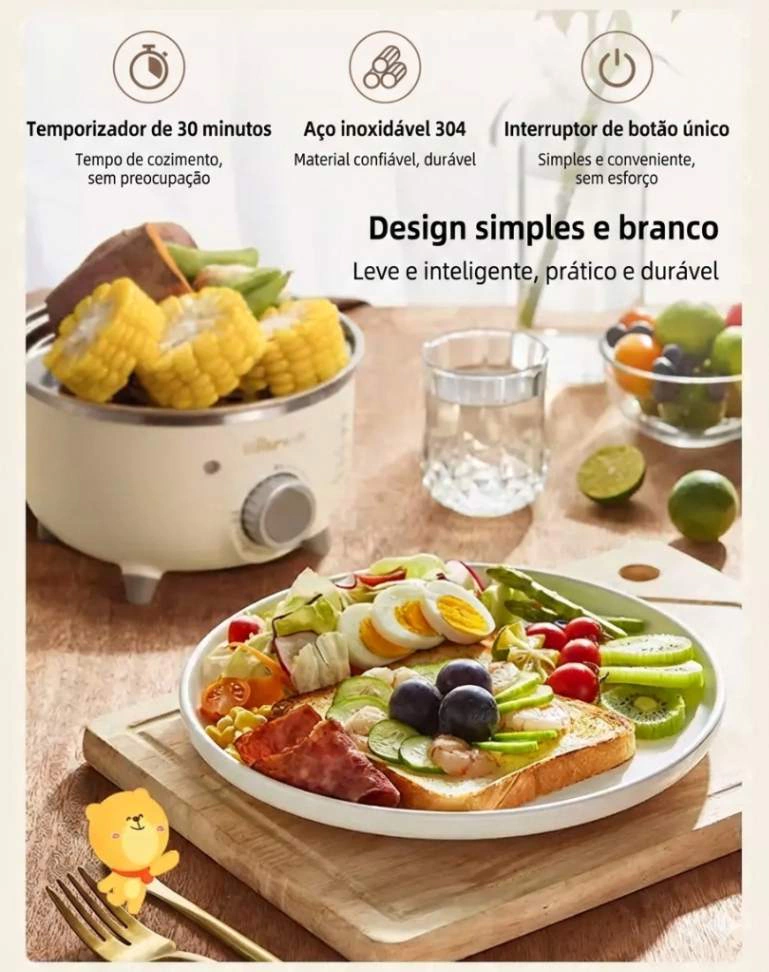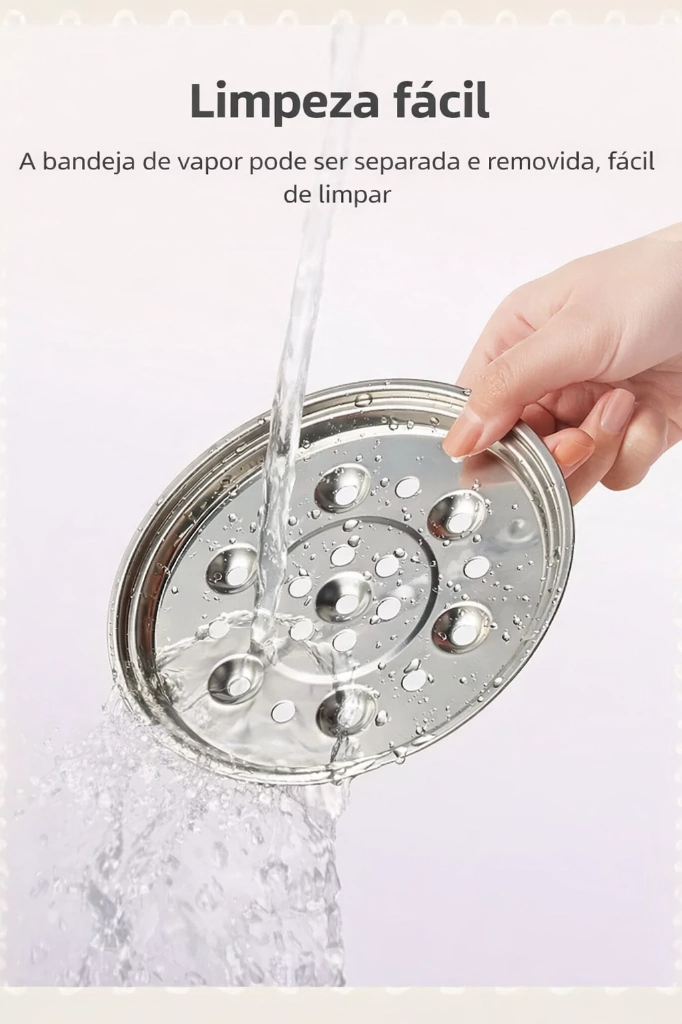 O sistema de cozimento a vapor distribui o calor de forma uniforme, garantindo resultados consistentes. Com temporizador por botão, você define o tempo e o aparelho faz o resto, desligando ao final do ciclo.