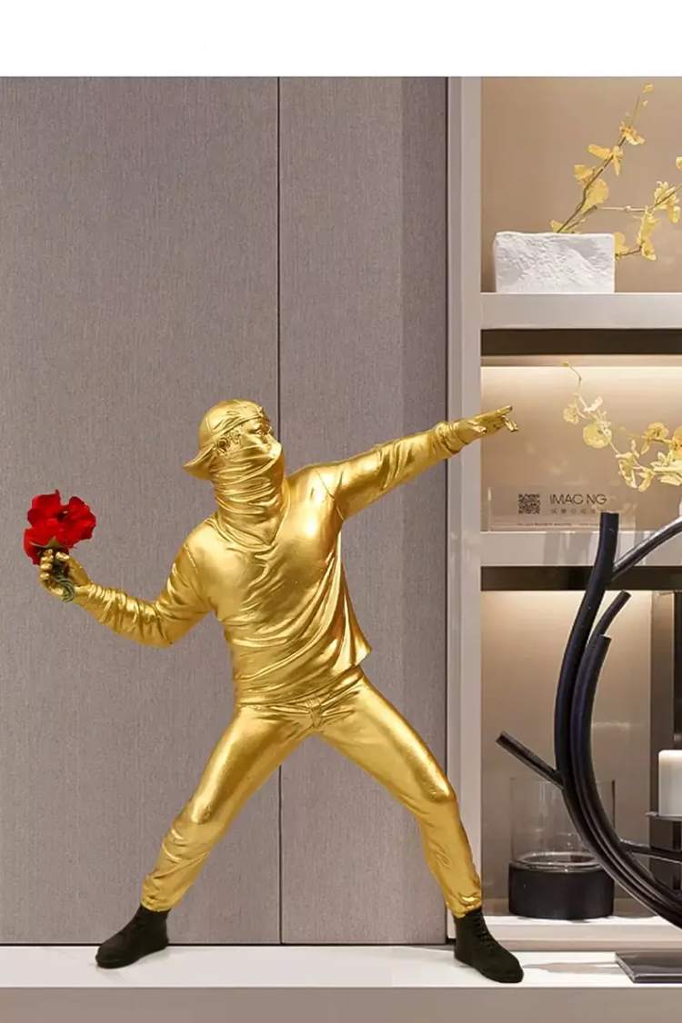 Essa estátua de resina em estilo grafite foi criada para romper com o óbvio, trazendo expressão, modernidade e presença para a decoração. Ela não passa despercebida — ela comunica estilo.